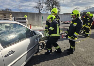 Der Schwerpunkt dieser Übung lag auf der technischen Menschenrettung nach Verkehrsunfällen – also dem sicheren und effizienten Umgang mit hydraulischem Rettungsgerät wie Spreizer und Schere.