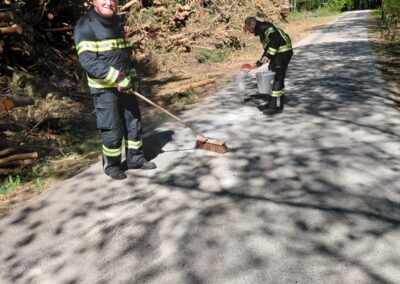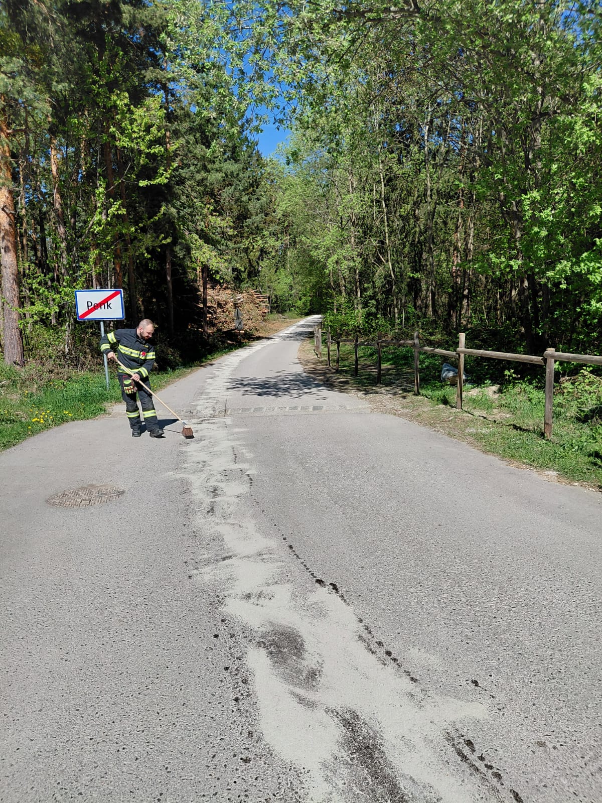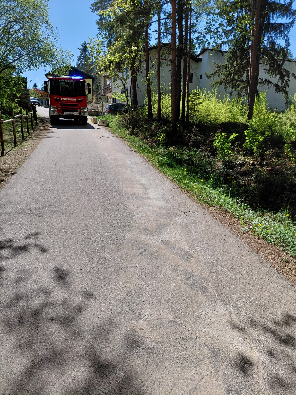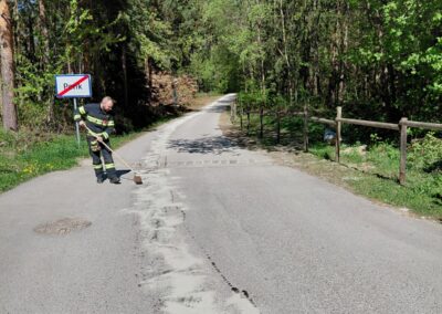 Ein defektes Fahrzeug hatte auf einer Länge von rund 300 Metern Öl verloren und dadurch eine Ölspur verursacht. Nach dem Eintreffen am Einsatzort wurde die betroffene Strecke abgesichert und anschließend die Ölspur mit mehreren Säcken Ölbindemittel gebunden.