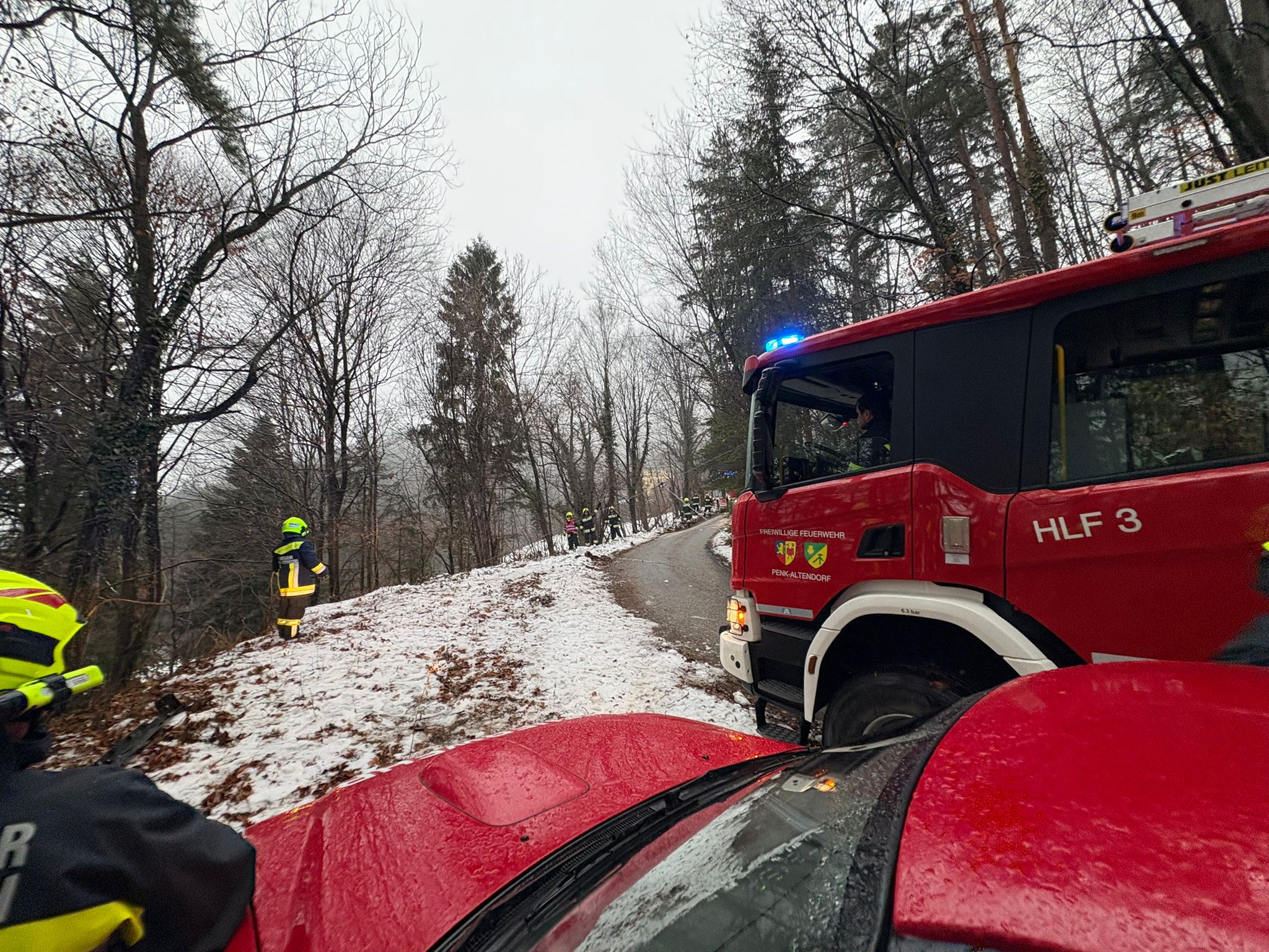 Am Sonntag, dem 25. Jänner, wurden wir gemeinsam mit der FF Enzenreith zu einer PKW-Bergung nach Syhrn alarmiert.